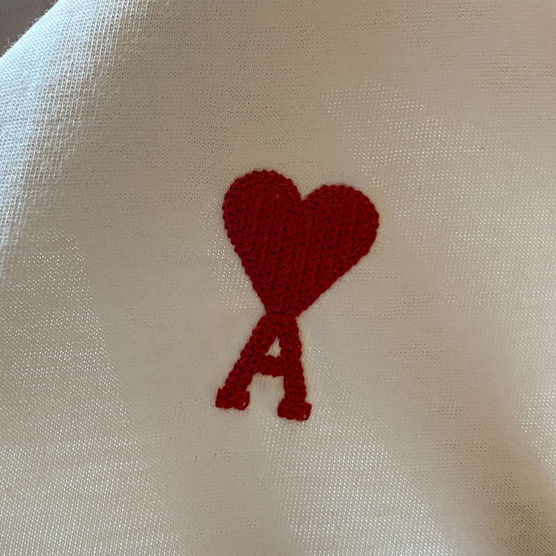 왼쪽 가슴에 하트 아미 로고가 포인트이고, 목 뒤에 AMI자수가 봉재되어 있다. 참고로 20 시즌 자수 로고에는 테두리가 있으며, 21 시즌에는 테두리가 없다.