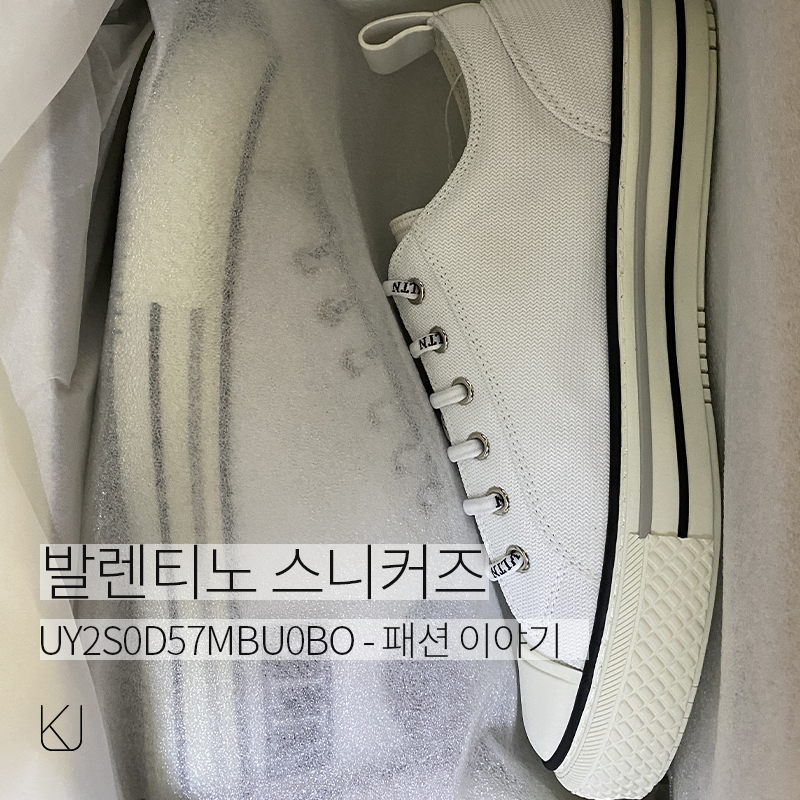 패션에 관심이 커지면서 여러 브랜드를 경험하고 있고, 최근 구매한 발렌티노 가라바니 스니커즈를 소개하려 한다. 제품 번호는 UY2S0D57MBU0BO로 패브릭 소재의 컨버스 형 디자인을 가지고 있다. 발렌티노를 선택한 이유는 컨버스를 신기에는 컨버스가 너무 가볍게 느껴졌고, 디올을 사기에는 너무 무거운(가격도) 브랜드이기에, 발렌티노 컨버스 디자인을 구매하게 되었다.