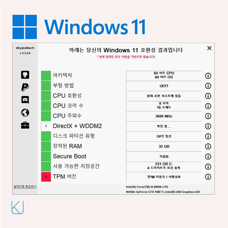 하지만 여전히 윈도우 11 설치의 큰 걸림돌은 TPM입니다. 기본적으로 메인보드의 TPM 모듈이 비활성화되어 있기에 지원하는 시스템에서도 윈도우 11을 설치 할 수 없었습니다.