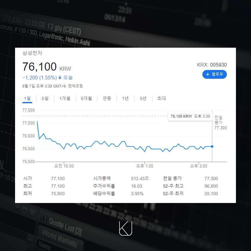 국내 주식을 하지 않겠다는 마음을 가지고 있었는데, 삼성주식이 내 마음을 바꿔놓았다. 금일 삼성 주식을 매수했는데, 오늘만 +2,100 (2.82%)가 올랐다. 구매 직후 말이다. 나는 정확하게 74,600원에 구매하였다. (구매일 8월 30일)