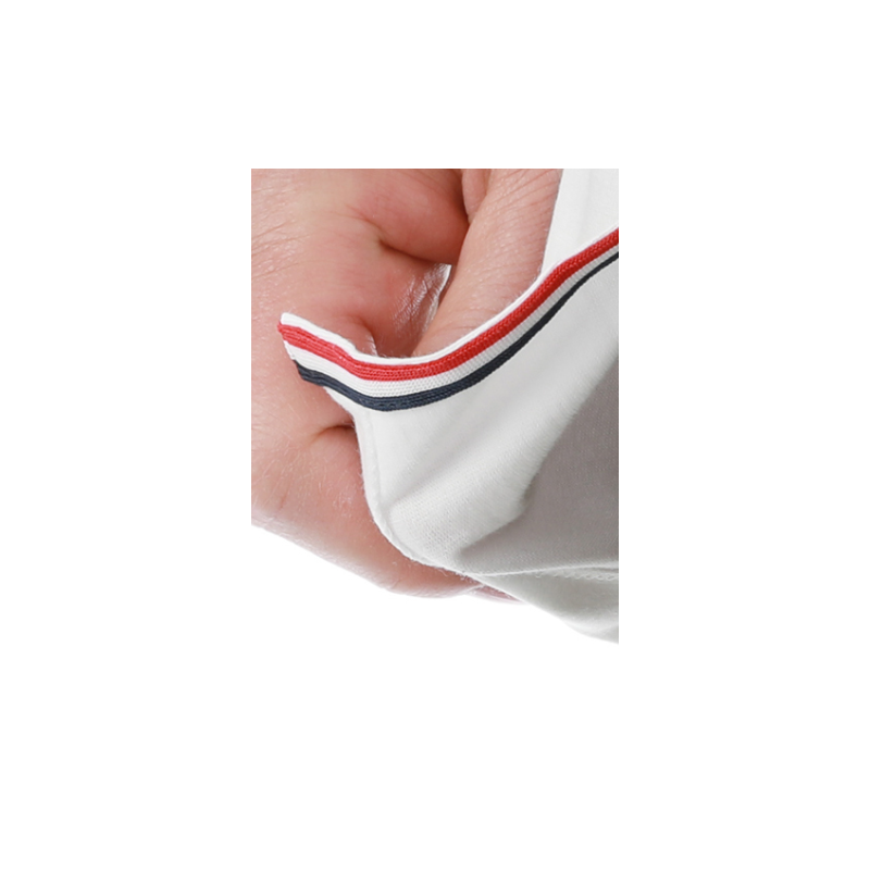 톰 브라운 티셔츠의 후기를 적어 본다면 다음과 같습니다. 톰 브라운답게 어깨 라인이 좋습니다. RWB는 포인트로 눈에 잘 들어옵니다.