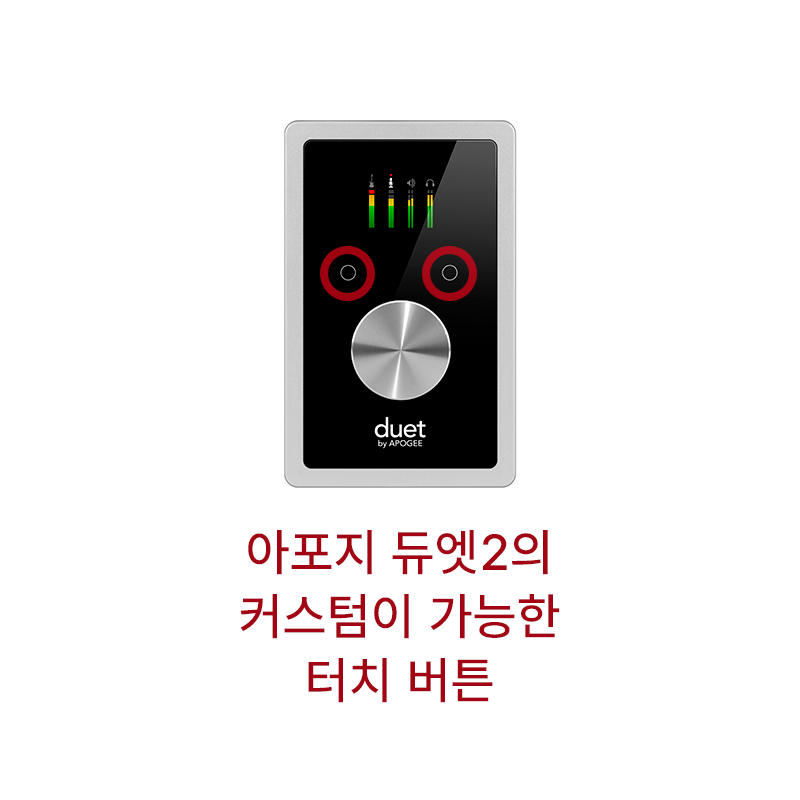 가장 아쉬운 항목이고, 다이렉트 모니터링의 사용이 빈번한 사용자에게는 정말 불편한 요소다. 듀엣2에도 터치 방식으로 설정이 가능했는데, 뺀 건 아쉽다. 듀엣2에 비해 더 작아졌다고 하지만, 다른 단축키 방식으로 노브를 길게 누른다던지 하는 방법으로 충분히 대체 가능했을 텐데 말이다. (출력장치가 선택된 상태에서 노브를 길게 누르면 음소거가 된다.) 듀엣 3는 다른 아포지 제품과 다르게 로직 프로에서 DAW에서 다이렉트 모니터링이 되지 않는다.(소프트 모니터링만 가능) 엘리먼츠,데스크탑 기타 모든 제품은 믹서 창 ‘Direct’ 버튼이 나오고, 다이렉트 모니터링이 가능하다.
