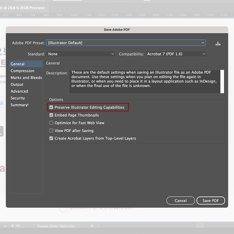일러스트레이터 PDF, 수정 불가능한 PDF 만들기