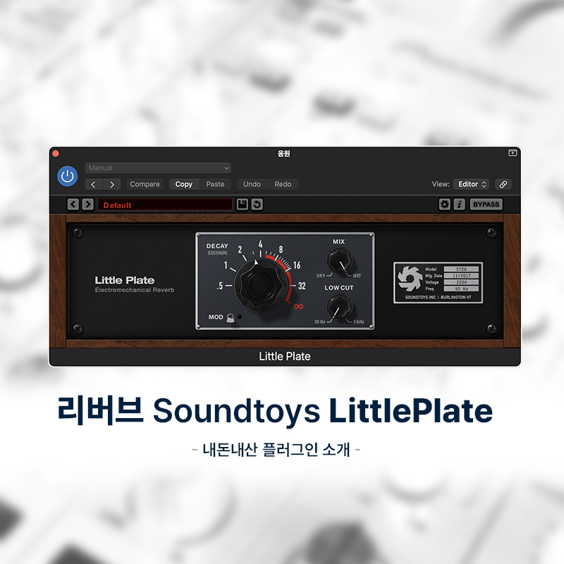 SoundToys의 SuperPlate 글을 쓰고 있었다. 글을 써 나갈수록 조금 복잡하다는 생각이 들었다. 일반인 입장에서 쓰려고 했지만 어쩔 수 없이 여러 단어를 쓰게 되었고 점점 복잡하게 되었다. 물론 SuperPlate는 간단한 조작 측면에 든다. 과거 리버브 플러그인의 대명사로 알려진 Lexicon 224도 상당히 복잡한 형태를 가지고 있다. 그래서 노브가 적은 리버브를 소개해야겠다는 생각이 들었고, 사운드토이즈의 Little Plate를 이 카테고리 첫 글을 장식하게 되었다.