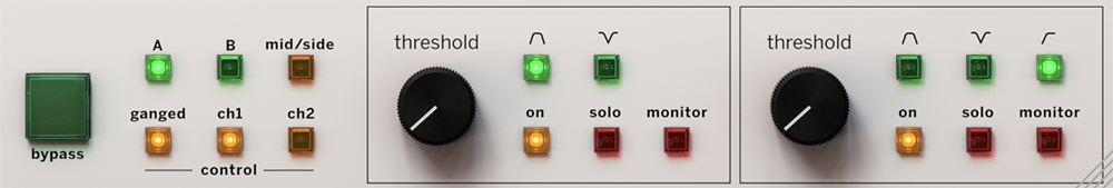 이미지를 보면 bypass(비활성화, 활성화 스왑 버튼)이고 A, B 스위치는 설정값을 저장해서 전환할 수 있는 버튼이다. Mid/Side는 Mid 중앙 채널만 처리하고 Side는 스테레오 신호의 양쪽만 처리하게 된다. Ganged/ Ch1/ Ch2 버튼이 보이는데, Ganged는 mid/side를 동일한 설정으로 저정하고, ch1은 미드를 조절한다는 의미이고 ch2는 side 채널(스테레오)을 조정할 수 있게 설정한다. Threshold 노브 치찰음 감지를 위한 값을 설정하는 노브이고 디지털 주파수 영역에 있는 박스도 조절이 가능하다. On, Solo, Monitor 버튼이 보이는데 모니터를 잘 해야 하는 건 당연하니 꼭 사용하길 바란다. 치찰음이 줄어든 소리가 모니터 버튼을 활성화했을 때 들리 게 된다.