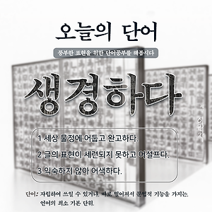 생경하다 생겸함 - 오늘의 단어 (0) | 2019.01.21 |